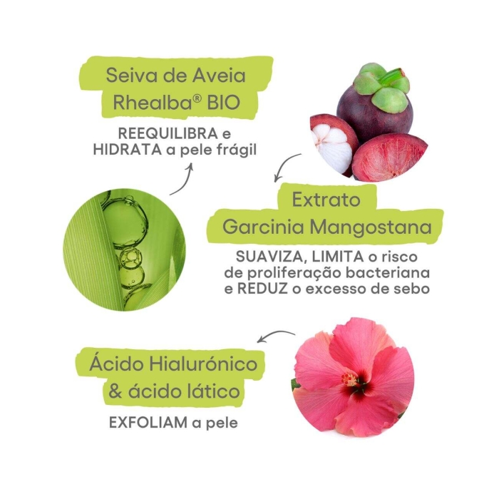- Rico em garcinia, para acalmar e limitar a proliferação bacteriana e regular o excesso de sebo