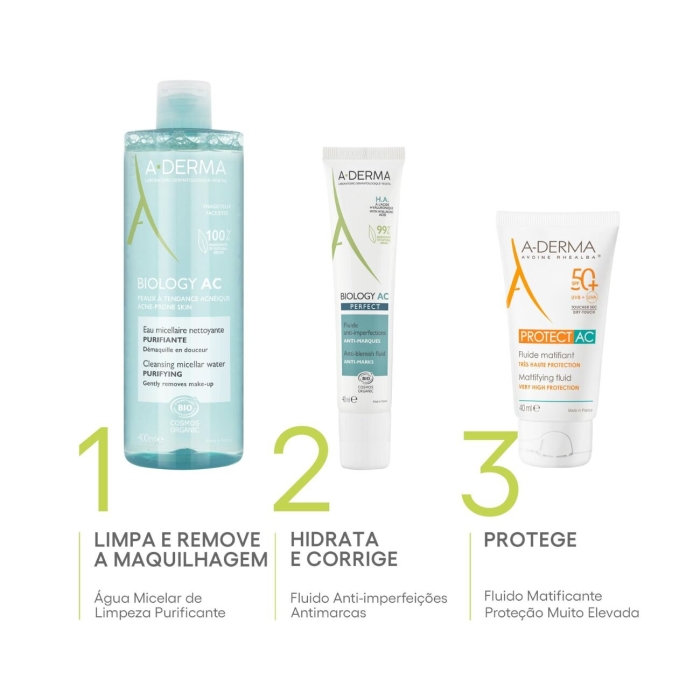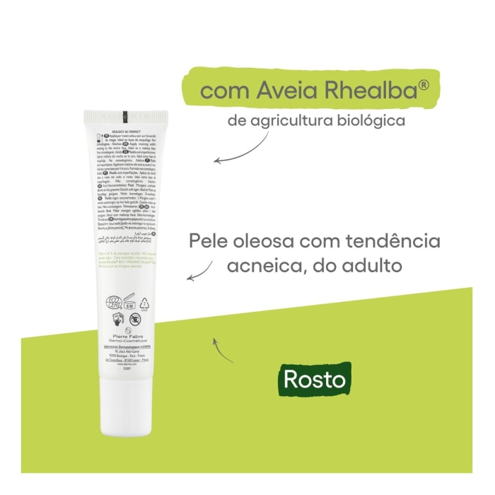 A-Derma Biology AC Perfect Fluido Anti-Imperfeições proporciona uma pele mais uniforme, matificada e rejuvenescida.