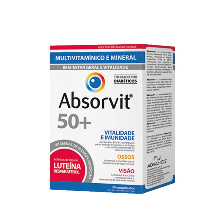 Absorvit 50+ Comprimidos ajuda a compensar as necessidades nutricionais a partir dos 50 anos.