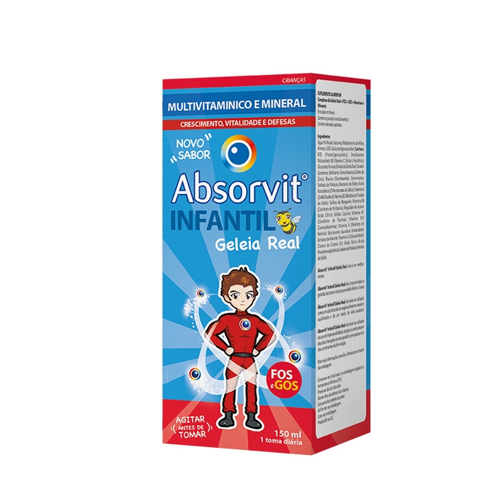 Absorvit Infantil Geleia Real Xarope é um suplemento alimentar infantil que contribui para promover o desenvolvimento, crescimento, vitalidade e reforçar o sistema imunitário em crianças a partir dos 3 anos de idade.