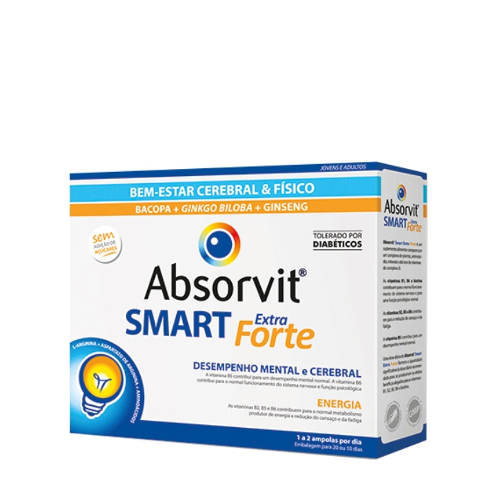 Absorvit Smart Extra Forte Ampolas ajuda a revitalizar e melhorar o desempenho mental e os níveis de energia.