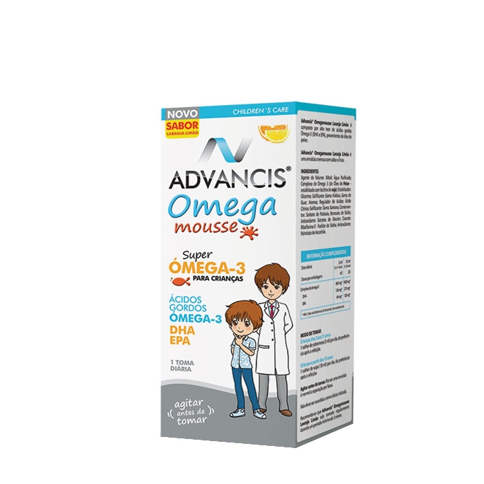 Rico em ómega-3, Advancis Omega Mousse é um suplemento alimentar especialmente desenvolvido para crianças a partir dos 3 anos que promove a concentração, o bem-estar e o reforço do sistema imunitário.