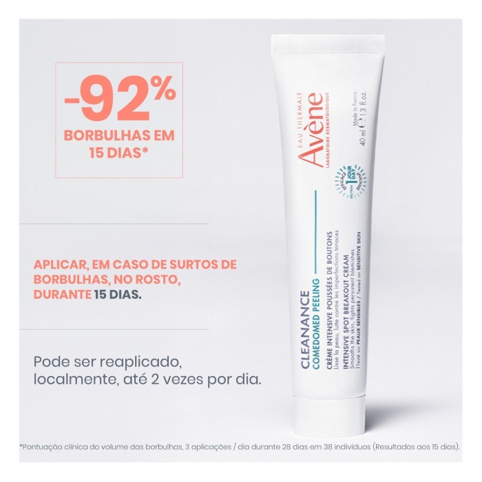 Avène Cleanance Comedomed Peeling Tratamento Localizado Anti-Imperfeições ajuda a reduzir a aparência de borbulhas, vermelhidão e manchas.