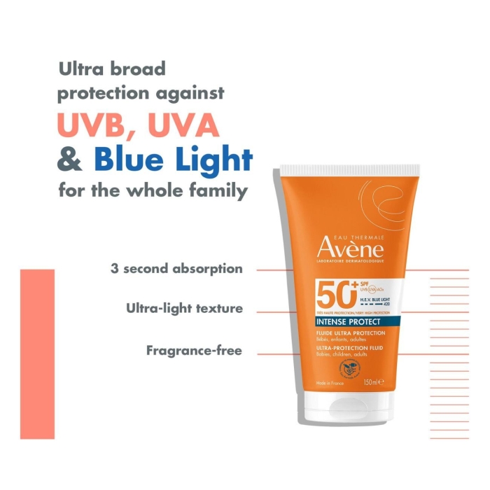 Avène Intense Protect SPF50+ Fluido ajuda a hidratar e proteger eficazmente contra os raios solares.