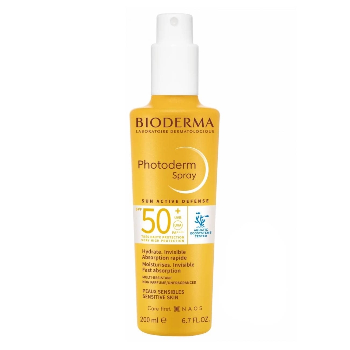 Com ação hidrante, Bioderma Photoderm Spray Solar SPF50+ é um spray leve com proteção muito elevada para rosto e corpo.
