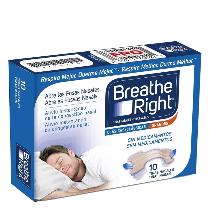 Respire melhor e reduza a congestão nasal com as tiras nasais Breathe Right, que ajudam a melhorar a passagem de ar pelo nariz.