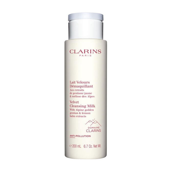 Com uma textura rica, Clarins Lait Velours Démaquillant Leite Desmaquilhante elimina suavemente a maquilhagem, respeitando o equilíbrio cutâneo.
