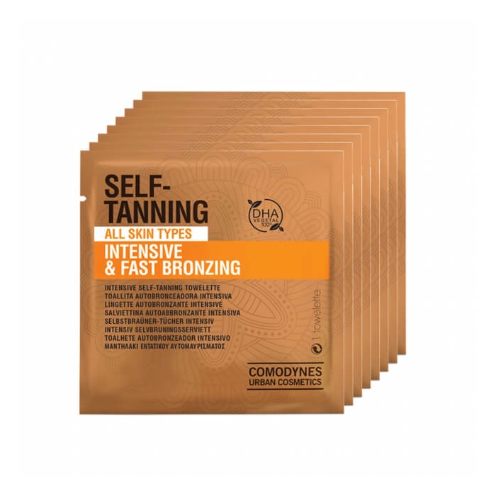 Comodynes Self-Tanning Toalhete Autobronzeador Intensivo confere à pele um bronzeado intenso e uniforme em apenas três horas, mantendo a pele suave e hidratada. Apto para rosto e corpo e para todos os tipos de pele.