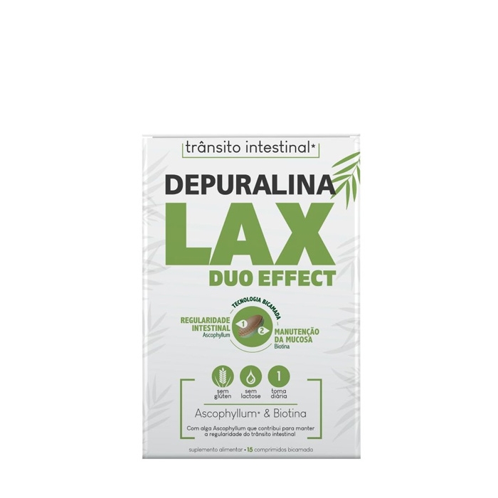 Com comprimidos que têm uma tecnologia de bicamada, Depuralina Lax Duo Effect atua em duas partes essenciais: melhora o funcionamento intestinal e ajuda a manter a mucosa intestinal saudável.