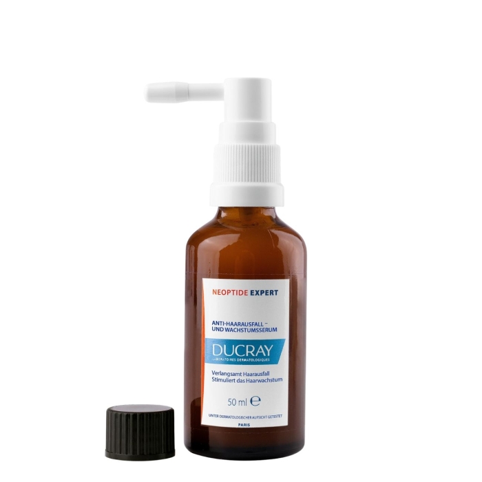 Aplique 8 pulverizações de Ducray Neoptide Expert Sérum Antiqueda & Crescimento uma vez por dia, no couro cabeludo seco ou húmido, com uma ligeira massagem.