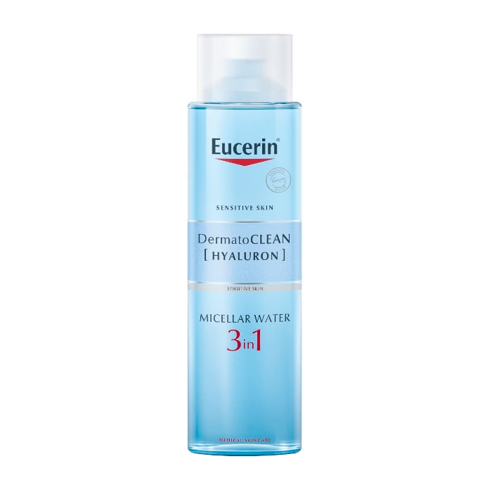Eucerin Dermatoclean Hyaluron Água Micelar ajuda a limpar, remover a maquiagem e refrescar a pele.