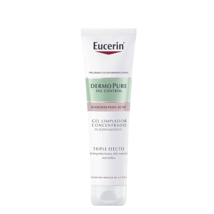Eucerin Dermopure Gel de Limpeza Concentrado é um gel de tripla ação que limpa, reduz as marcas de acne e controla o excesso de sebo.