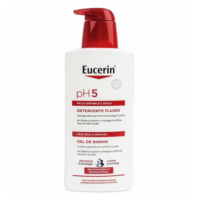 Aplique Eucerin pH5 Gel Duche na pele molhada, com uma massagem suave. Enxaguar abundantemente.