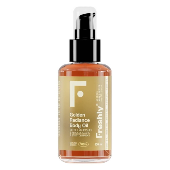 Com 100% de ingredientes naturais, Freshly Golden Radiance Óleo Corporal nutre e ilumina a pele.