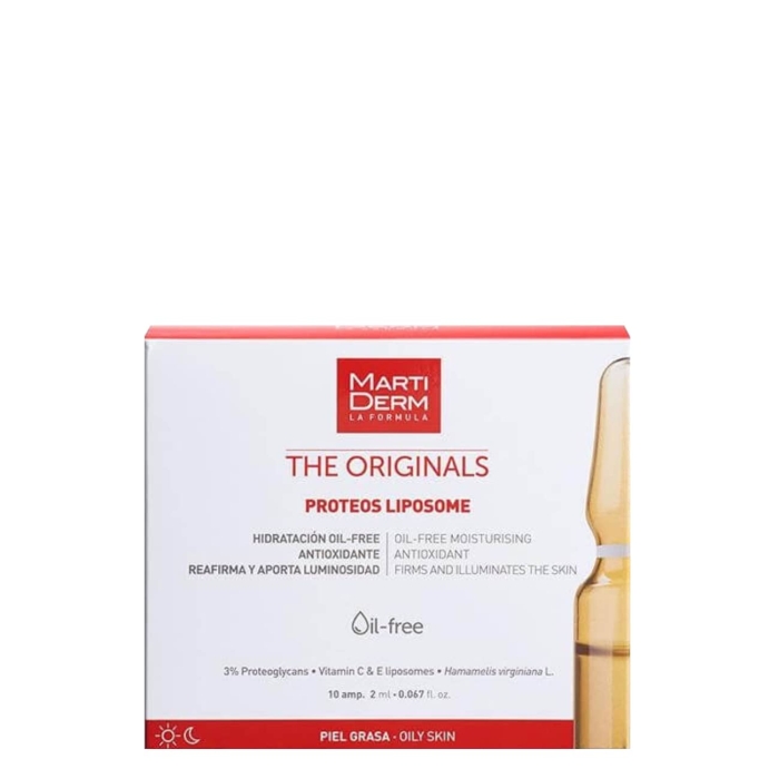 Martiderm The Originals Proteos Liposomas Oil Free Ampolas ajudam a combater as rugas, flacidez e outros sinais de fotoenvelhecimento cutâneo prematuro produzido pela exposição solar e pelo stress oxidativo ambiental.