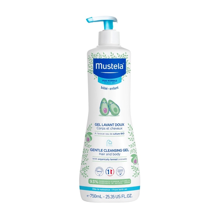 Mustela Dermo Lavante Gel ajuda na limpeza delicada do corpo e couro cabeludo do bebê.