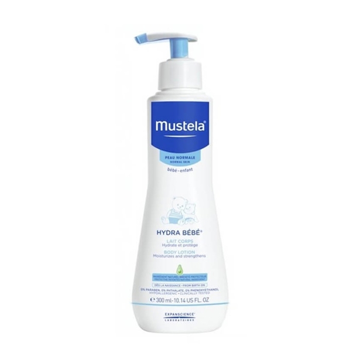 Aplique Mustela Hydra Bebé Leite Corporal suavemente na pele do corpo do bebê, idealmente após o banho diário.