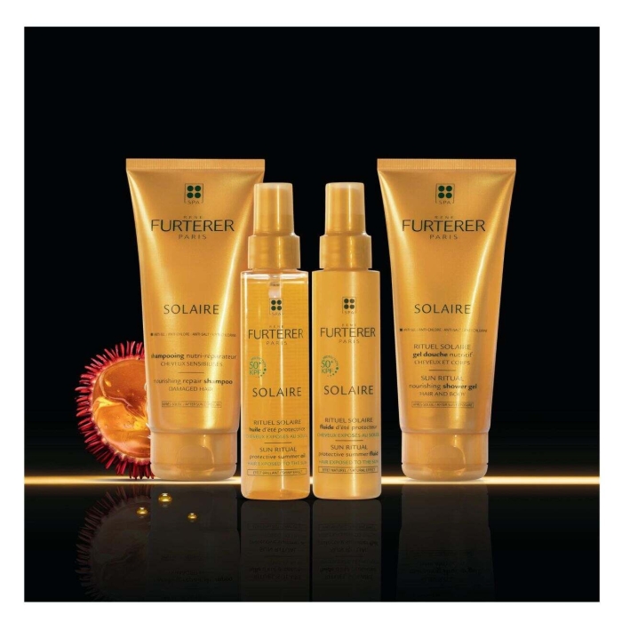 René Furterer Solaire Fluido ajuda a nutrir e proteger de forma eficaz para um cabelo nutrido e saudável.