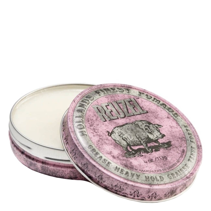 Reuzel Pink Pomade Grease é uma pomada de fixação forte para o cabelo.
