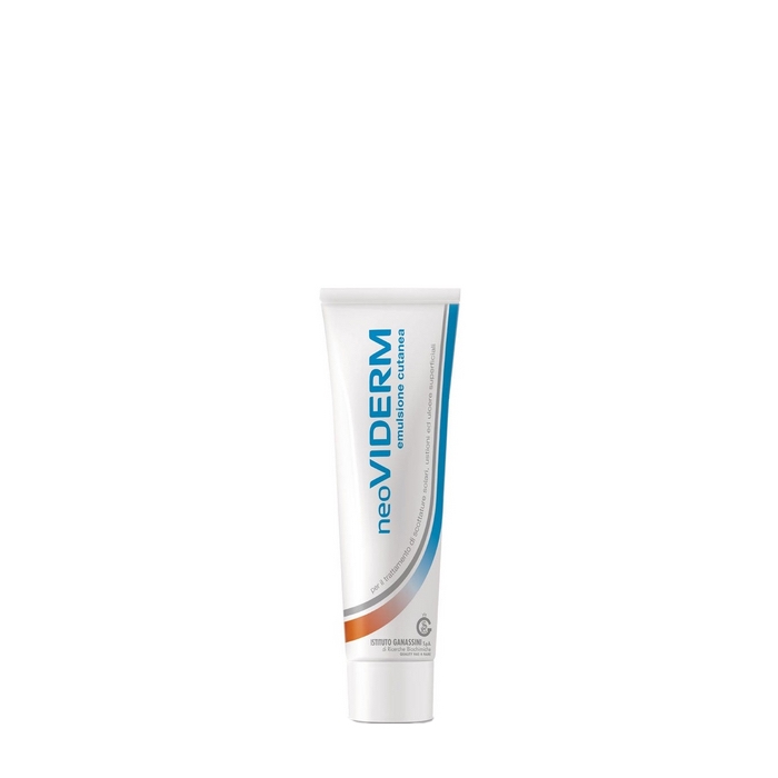 Com uma fórmula hipoalergénica, Rilastil Neoviderm Emulsão Reparadora alivia a pele afetada por queimaduras (solares, 1º e 2º graus), irritações cutâneas, úlceras superficiais, descamação e ressecamento.
