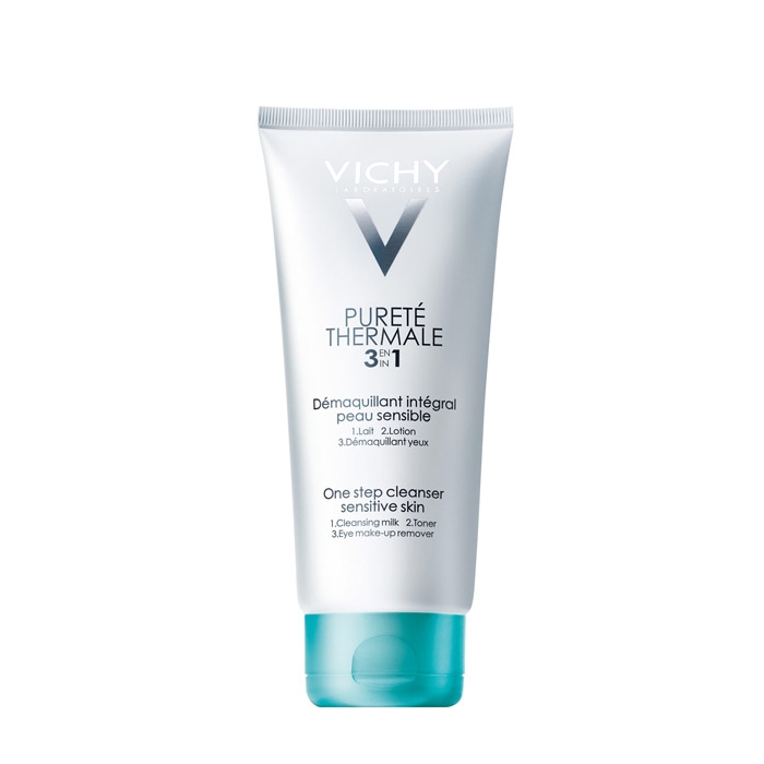 Vichy Pureté Thermale Demaquilante Integral 3-em-1 ajuda limpar, demaquilar e suavizar a pele delicada do contorno dos olhos.